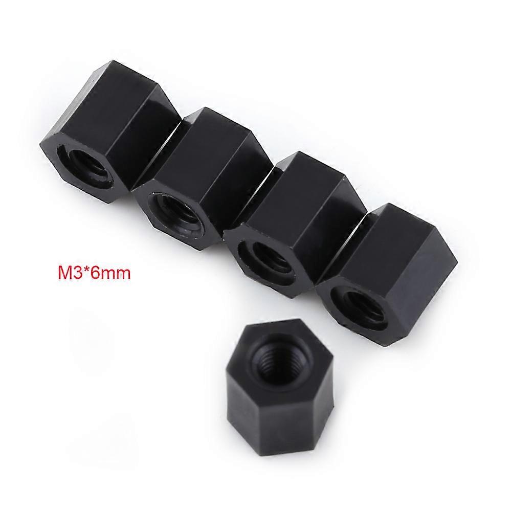 100Pcs Black PA66 M3 Female x M3 Female Hex Threaded Spacer Standoff(M3*6)