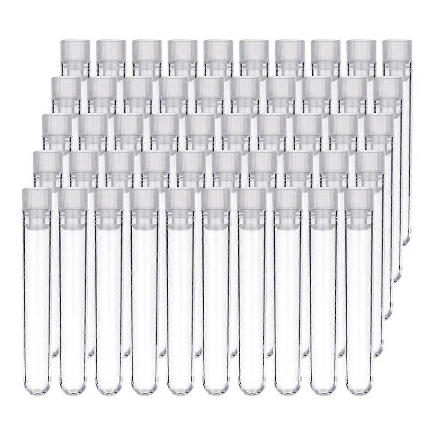 100Pcs Clear Plastic Test Tubes with White Screw Caps Sample Containers Bottles Push Caps 12X75mm