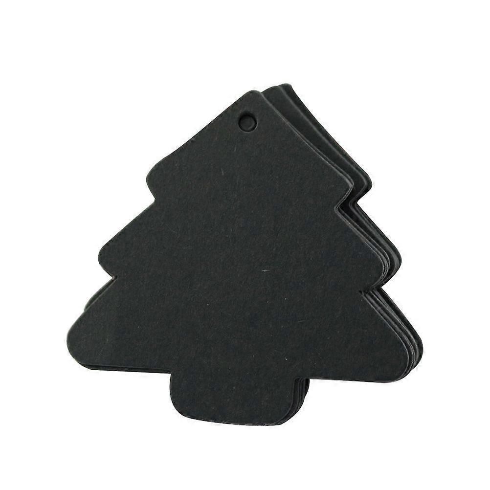 100pcs Christmas Tree Shape Label Kraft Paper Vintage Blank Name Tag Price Tags Wedding Party Gift Tags (Black)