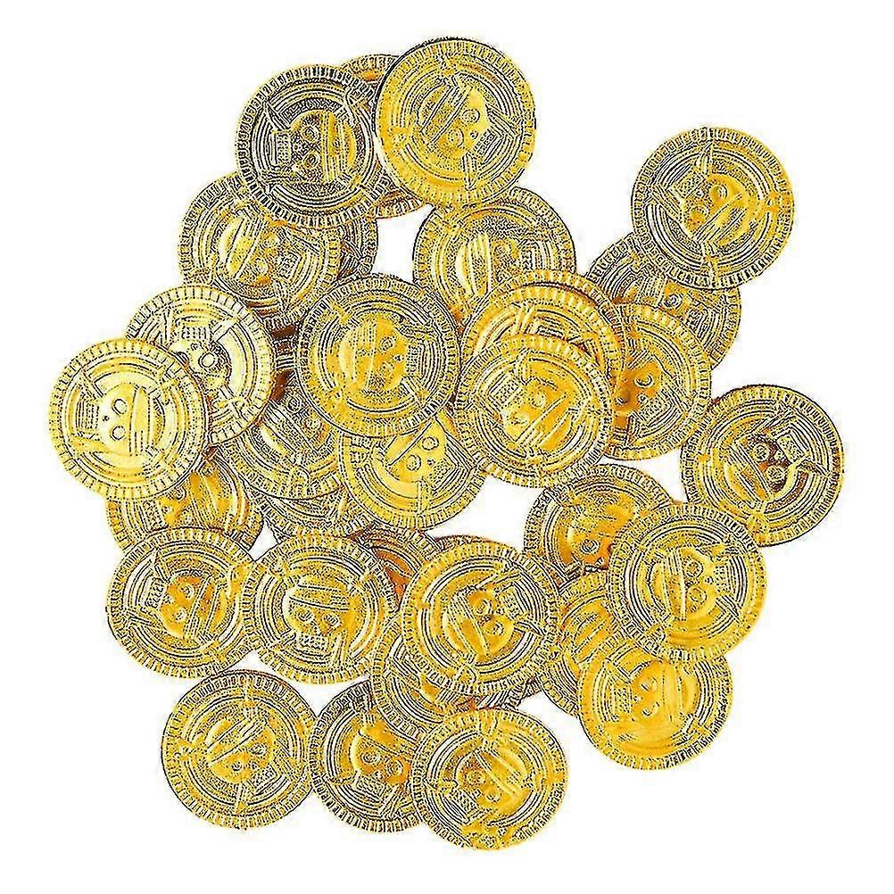 100pcs Pirates Golden Coins Plastic Treasure Coins Play Money Toy Game Props Playset Goodie Bag Fillers Party Favor for Kids G