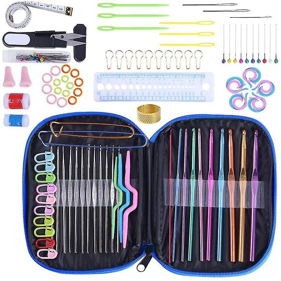 100pcs Crochet Hook Set With Yarn Knitting Needles Sewing Tools Knit Gauge Diy Craft Tools Kit (blu