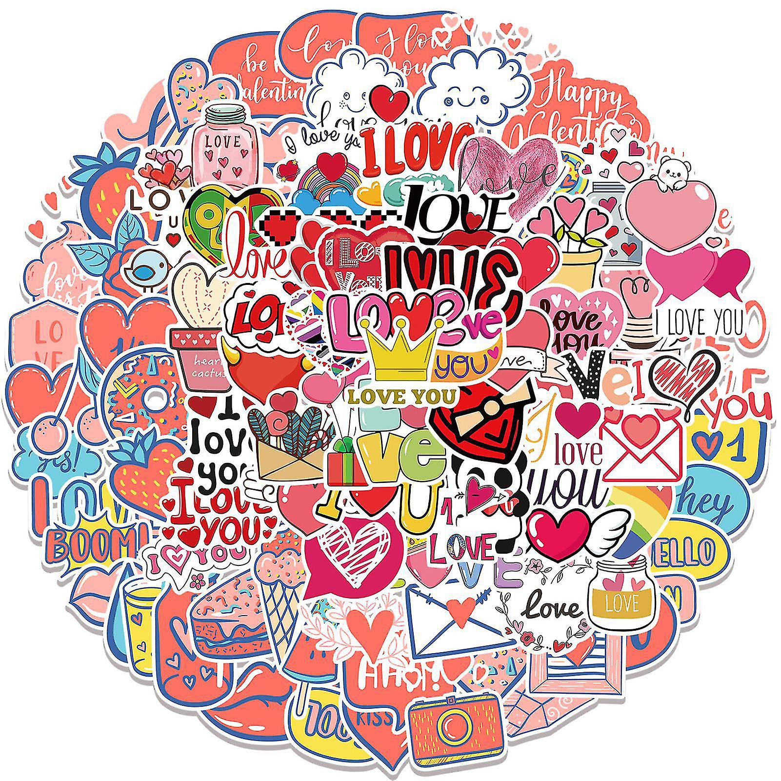 100pcs Heart Stickers Waterproof Pvc Adhesive Cute Romantic Decals Diy Vinyl Art Various Valentine's Day Love Heart Cartoon Graffiti Stickers For Lap