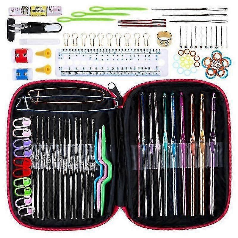 100pcs Crochet Hooks Set Full Set Knitting Needles Hook Knit Diy Kit With Bag f54 100% New and High Quality ColorAs Picture Package Included: 10 x Random Colorful Aluminum Hooks- Sizes 2.0mm/ 2.5mm/ 3.0mm/ 3.5mm/ 4.0mm/ 4.5mm/ 5.0mm/ 5.5mm/ 6.0mm/6.5mm 12 x Silver Hooks- Sizes 0.6mm/0.75mm/0.85mm/0.9mm/1.0mm/1.1mm/1.25mm/1.4mm/1.5mm/1.6mm/1.75mm/1.9mm 10 x Stich Makers 1 x Knitting Gauge 2 x Stitch Holders 3 xStainless steel needle 10 x Bead Pins 3 x Knitting Needles 6 x Plastic Sewing Needles/Yarn Needles 2 x Needle Point Protectors 15 x Counting Circular Rings 2 x Row Counter 1x Thimble 10x Gold pins 10x Open counting circular rings 1x Scissors 1 xMeasure Tape 1x Leather case