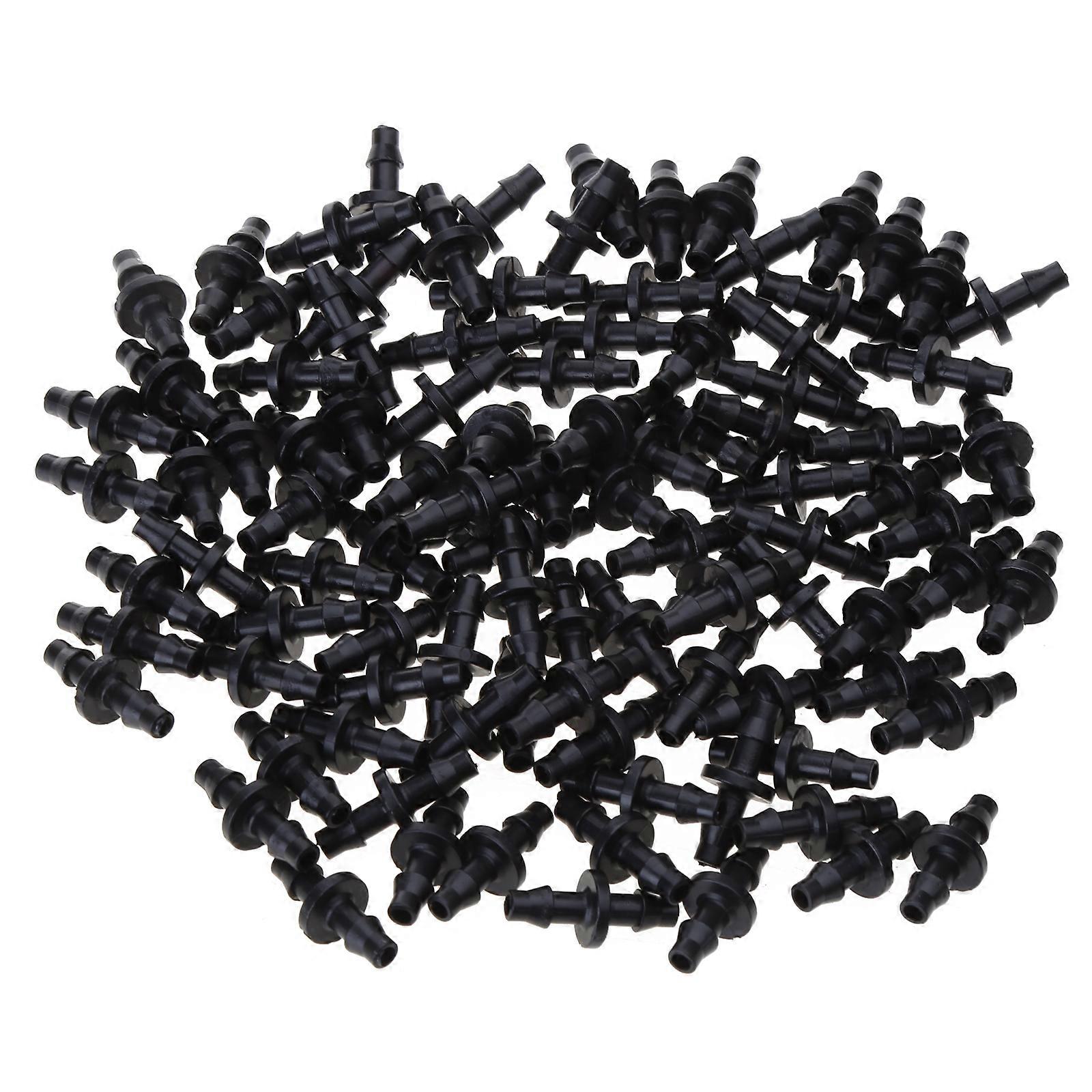 100PCs Barbed Connector Double Way 1/4" Fr 4/7mm Hose Garden Drip Irrigation Hot Black