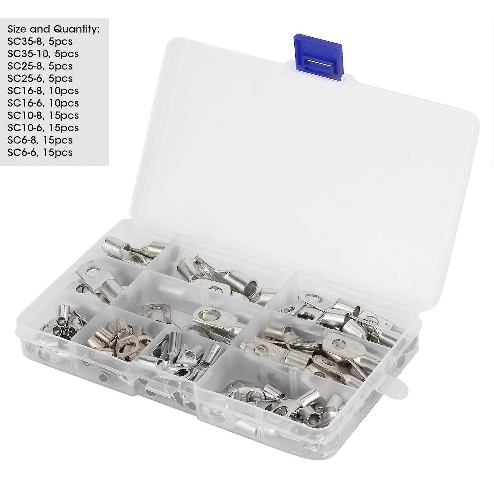 100pcs SC Battery Wire Lugs Tinned Copper Crimp Rings Connectors for Car Marine Distribution Box