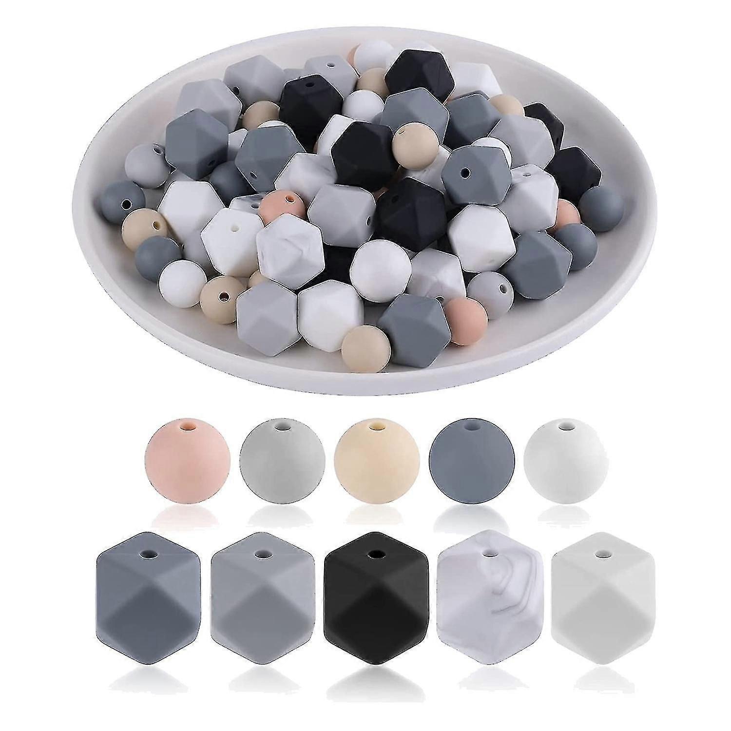 100pcs Round And Hexagon Silicone Beads, Silicone Beads Bulk Making Kit For Jewelry Making
