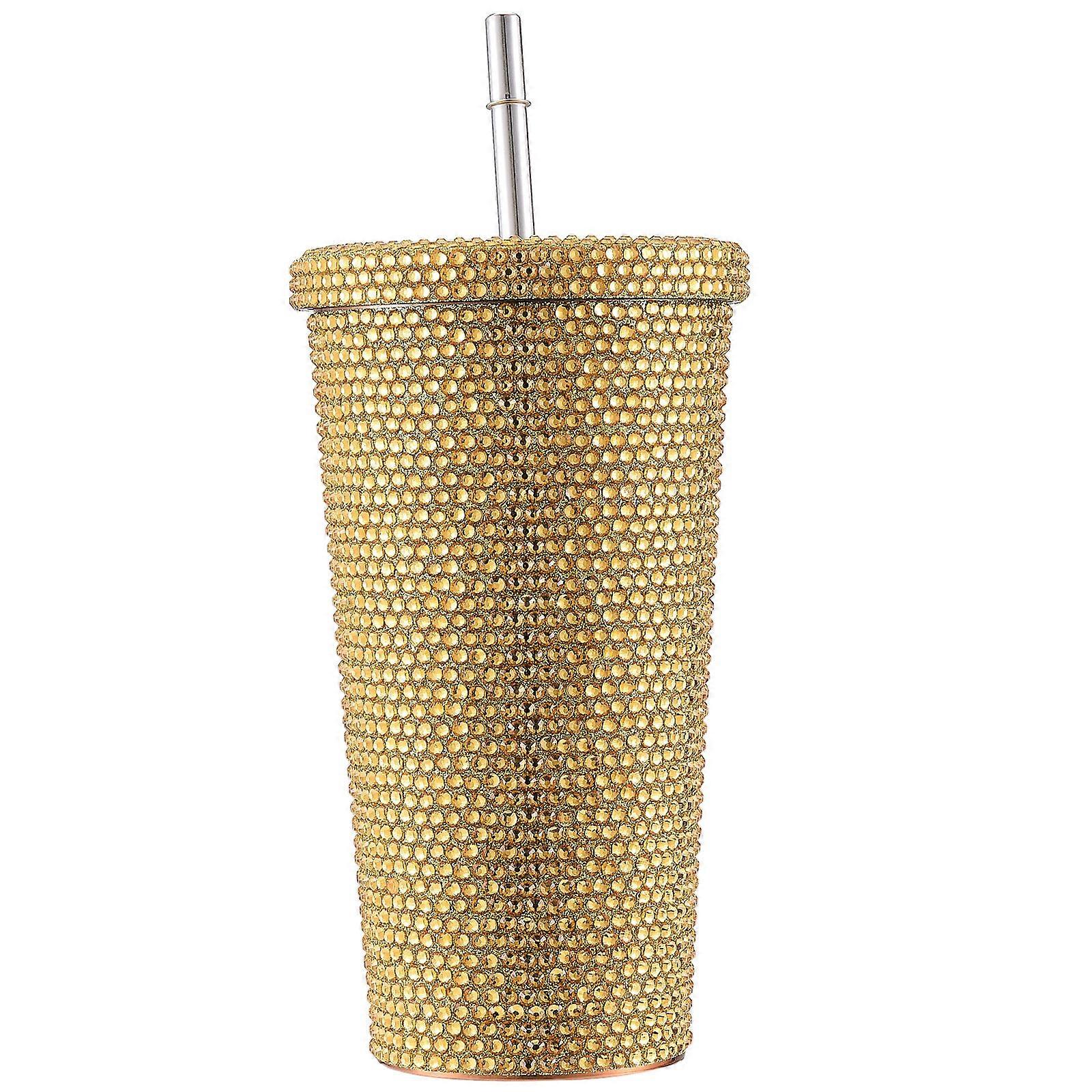 100% New Studded Bling Diamond Tumbler Glitter Water Bottle with Lid Stainless Steel Vacuum Thermal Straw Tumbler Rhinestone Tumbler 500 Ml/17 Oz