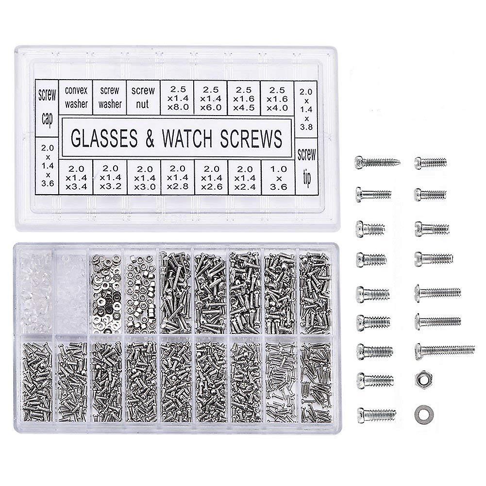 1000Pcs Stainless Steel Eyeglasses Watch Repair Screw Replacement Kit Set Tiny Screws Nut Assortmen