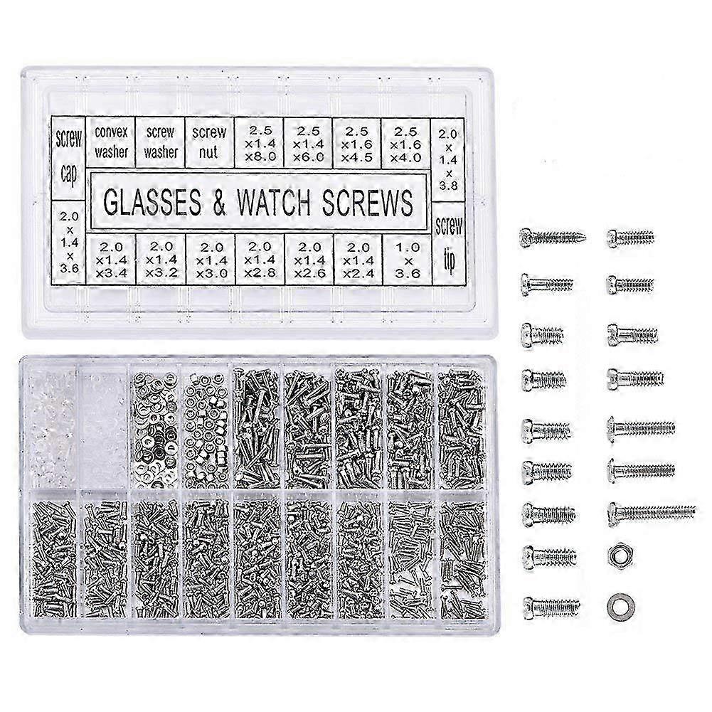 1000Pcs Stainless Steel Eyeglasses Watch Repair Screw Replacement Kit Set Tiny Screws Nut Assortment