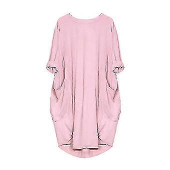 1009919900929المرأة كبيرة الحجم طويل فضفاض فستان ميدي مع جيوب f26