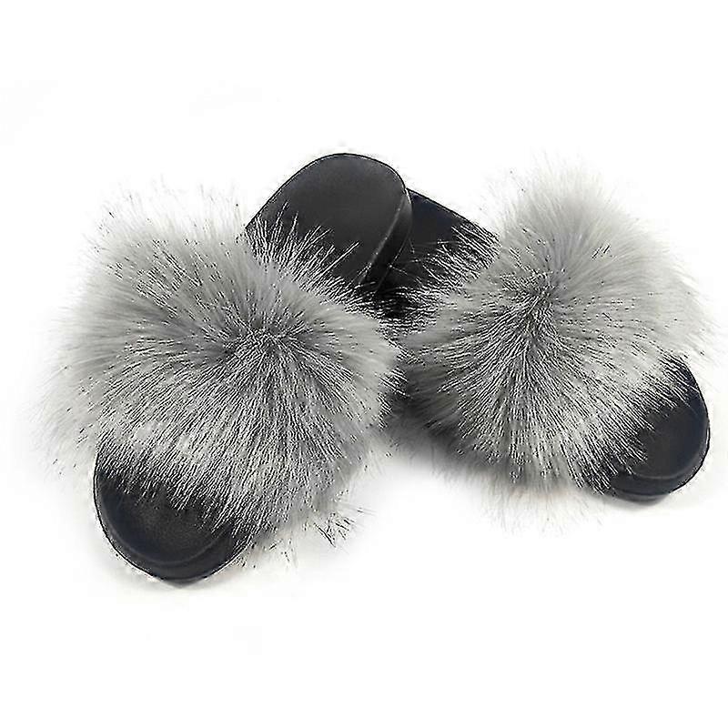 "1009919902794Multicolors Women's Faux Fur Slides, Open Toe Cute Fur Slippers, Comfortable Fur Sandals With Fluffy Fur" f26