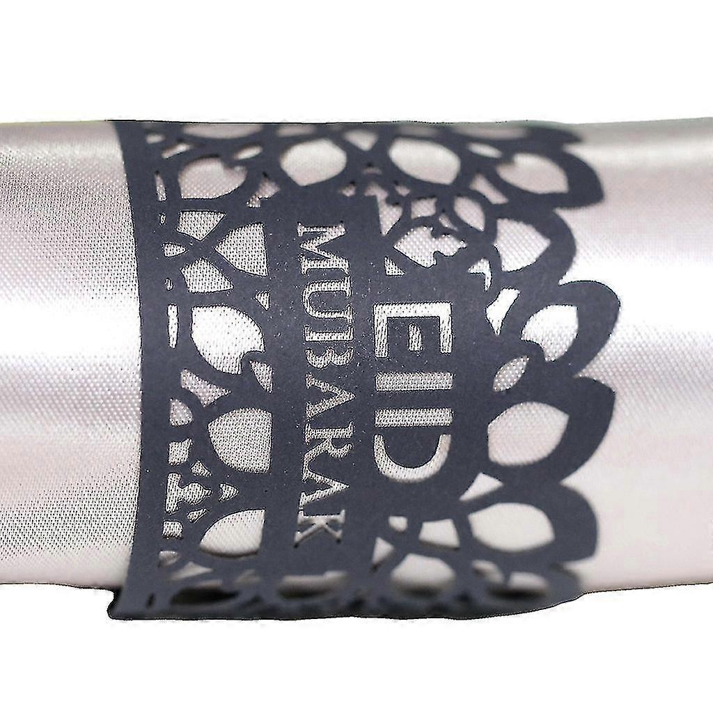 100pcs Ramadan Decoration Napkin Holder Hollow Out Paper Ring Eid Mubarak Muslim Kareem Party Table Decor( Color : Black )