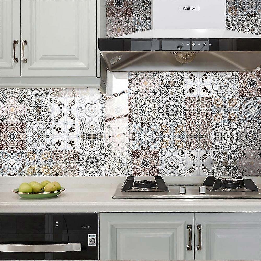 10pcs Floral Waterproof Mosaic Tile Stickers Self Adhesive Home Wall Decor Mural