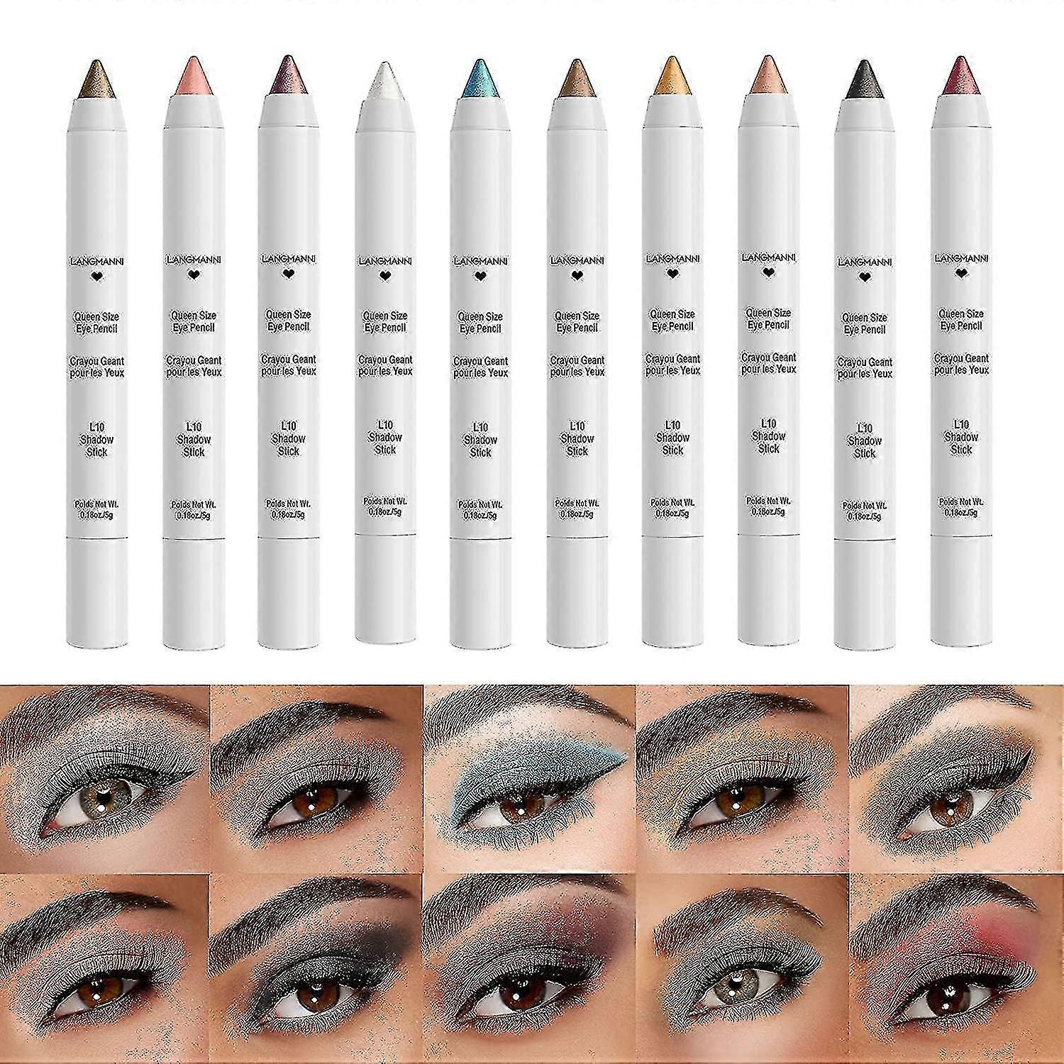 10pcs Eyeshadow Stick, Liquid Eyeliner Eyeshadow Stick Set Waterproof Shimmer High Pigmented Eye Shadow