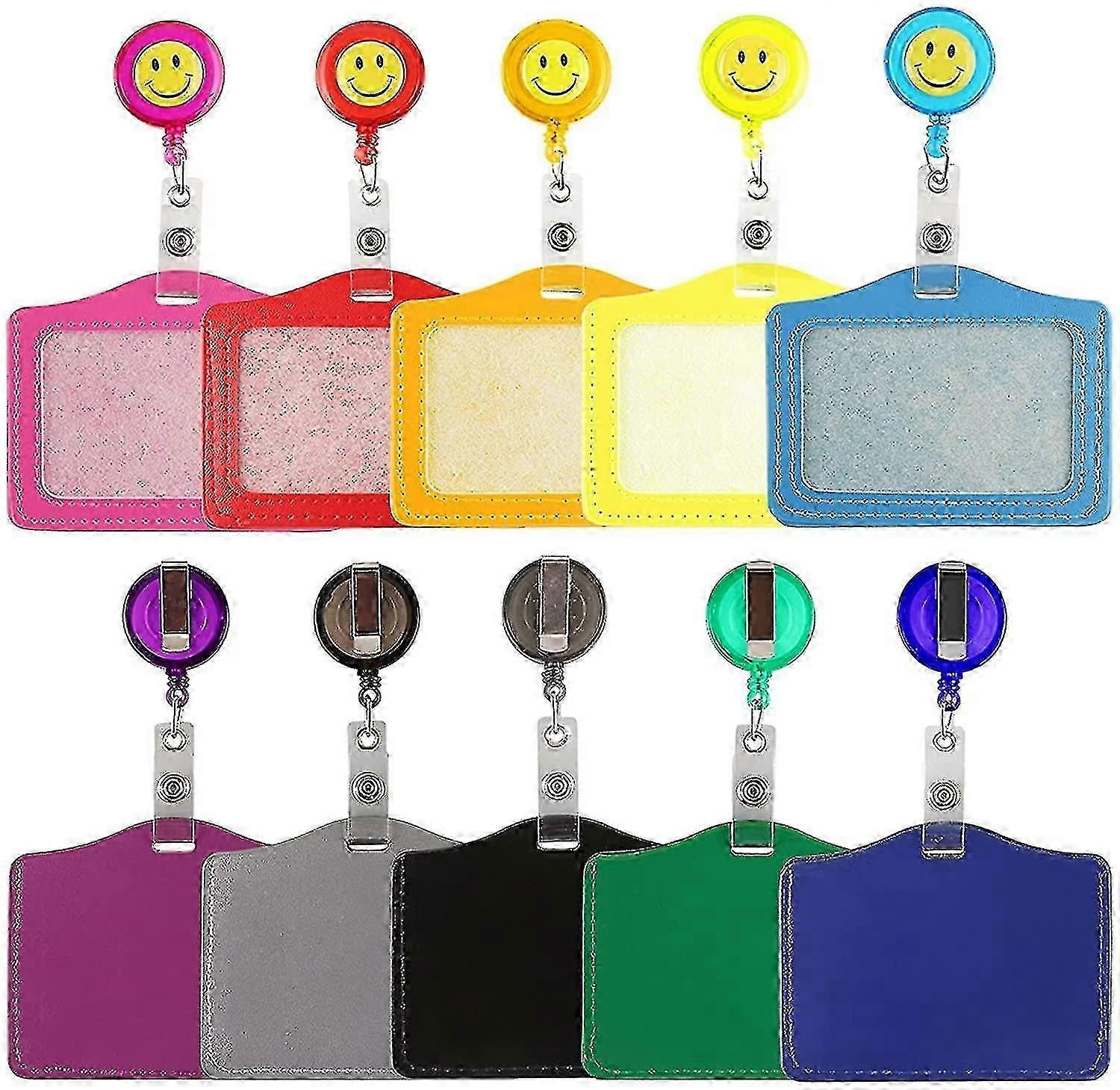 10pcs Retractable Id Badge Holders,name Tag Holders With Smile Face Clip For Business Events,exhibitions,office And School,10 Colors