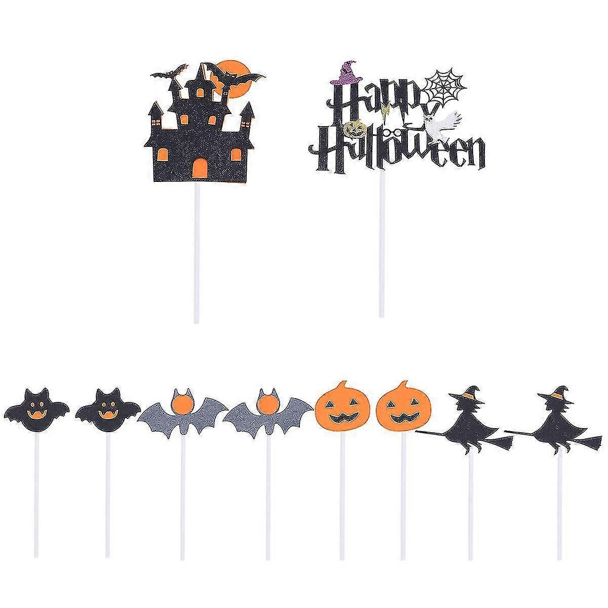 10pcs Halloween Elements Cupcake Toppers Cake Insert Decoration
