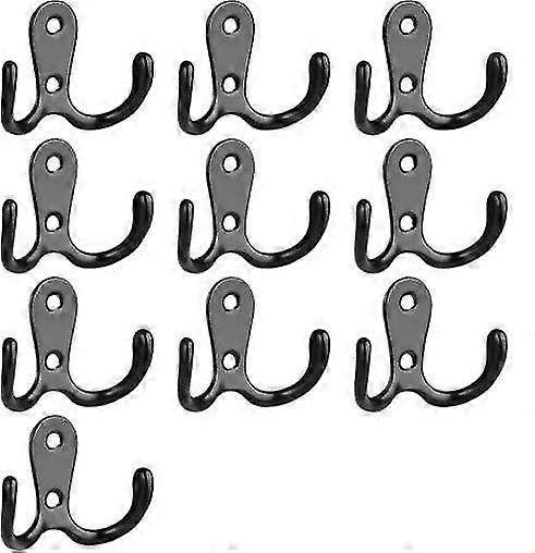 10Pcs Coat Hooks, Retro Double Prong Robe Hooks for Hanging Clothes, Wall Mounted Hooks with Screws