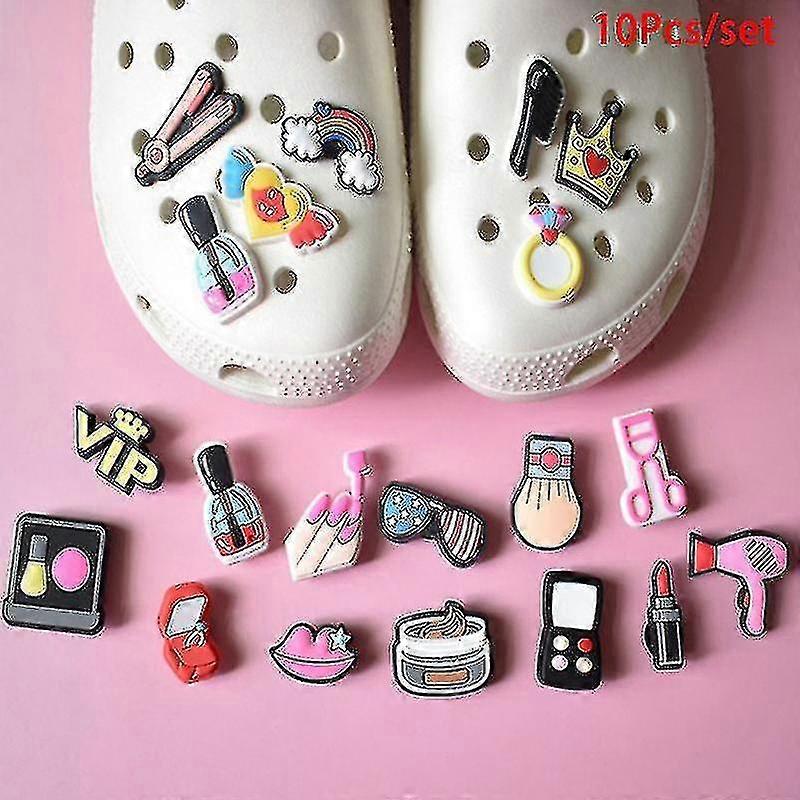 10pcs Shoe Charms Cartoon Makeup Tool Shoe Buckle Decorations Fit Croc Wristband