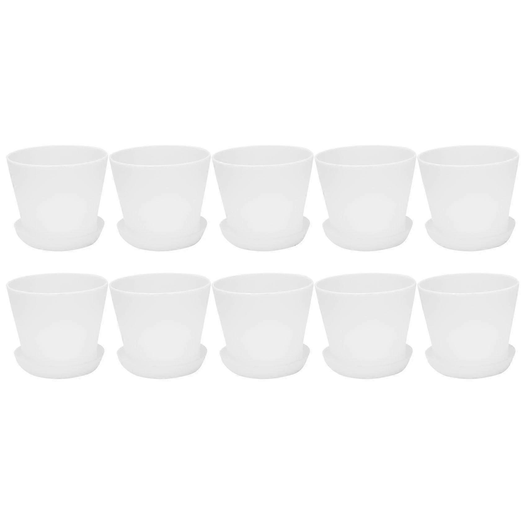10X Plastic Plant Flower Pot Planter with Saucer Tray Round Gloss Home Garden Decor, White Upper Ca