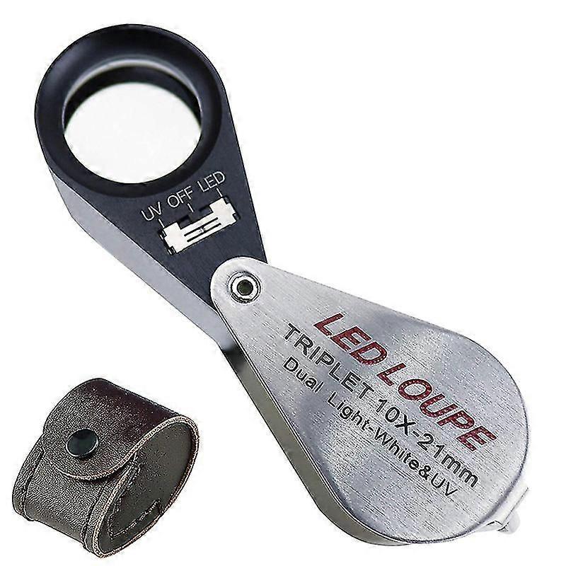10x Magnification Jeweler Loupe Triplet Lens Magnifier With 6 Led Uv Light 21mm For Gems, Jewelry