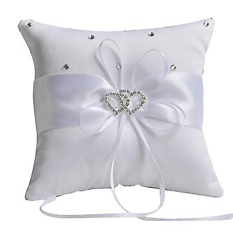 10x10cm Romantic Bridal Wedding Ring Pillow Double Heart Ribbon Cushion Decor