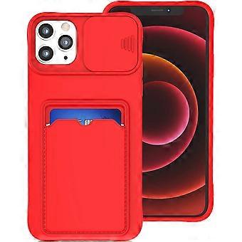 11 Pro Max Case with Card Holder Soft Liquid Silicon Scratch-Resistant Camera Cover Slide Lens Protective Case for 11 Pro Max (Red) Red -