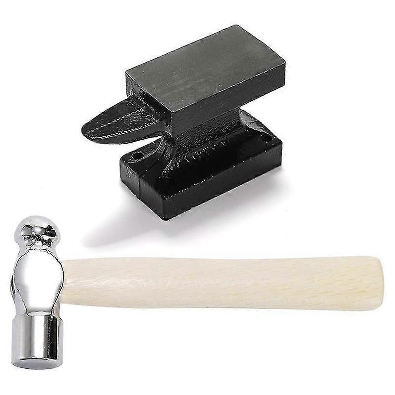 1.1 Lbs Small Horn Anvil Bench Block with Metal Stamping Hammer for Jewelry Making & Repairing, Cast