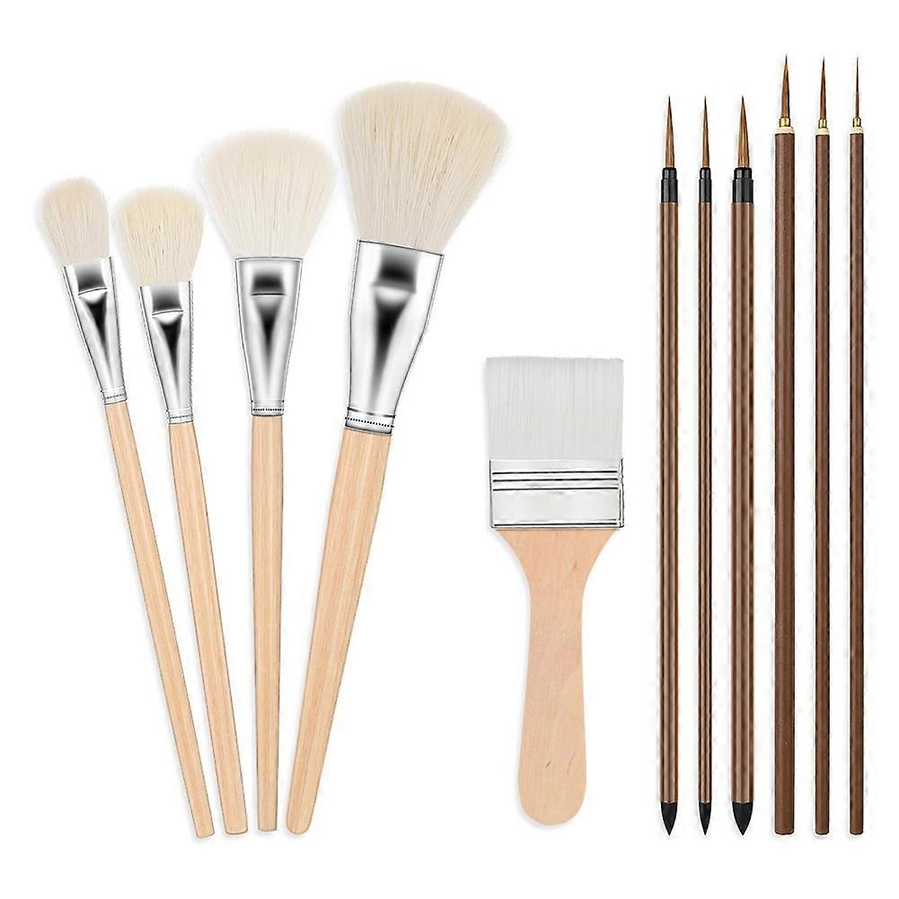 11Pieces Pottery Glaze Tools Wooden Ceramic Brushes Ceramic Brush Set