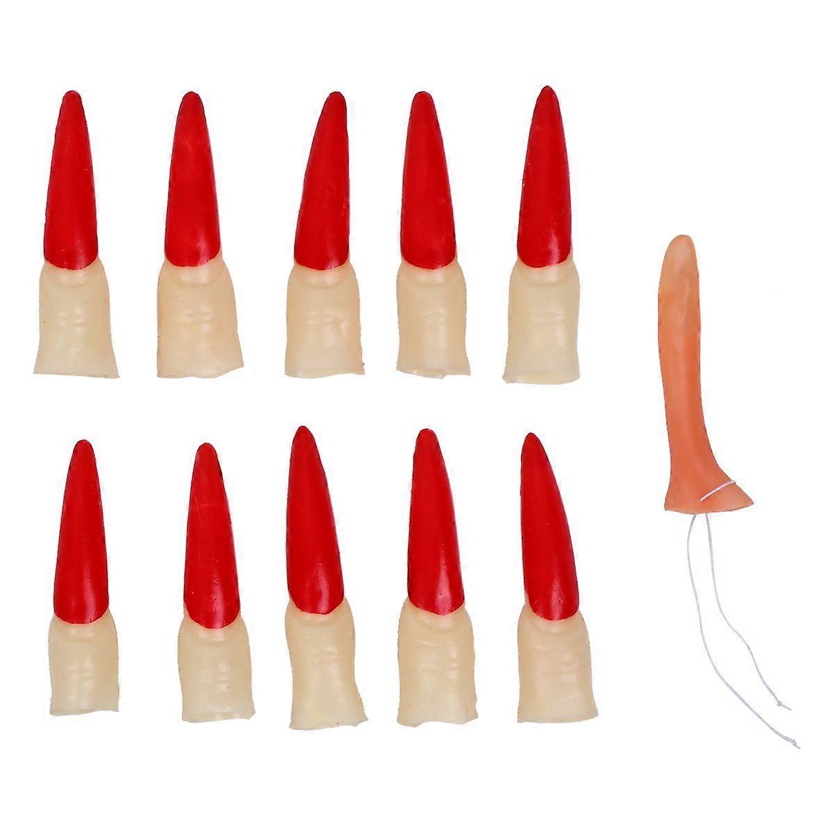 11Pcs Zombie Witch Fake Finger Nail Set Long Nose Decoration Party Supplies