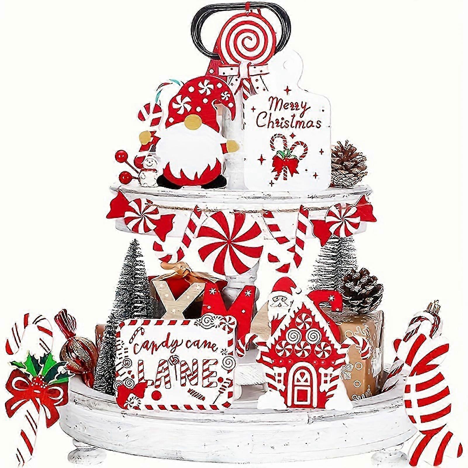 11pcs Festival Tray Decor Set Candy-Cane Lane Ornament Set Colorful Adorable Table Wooden Sign for Home Party