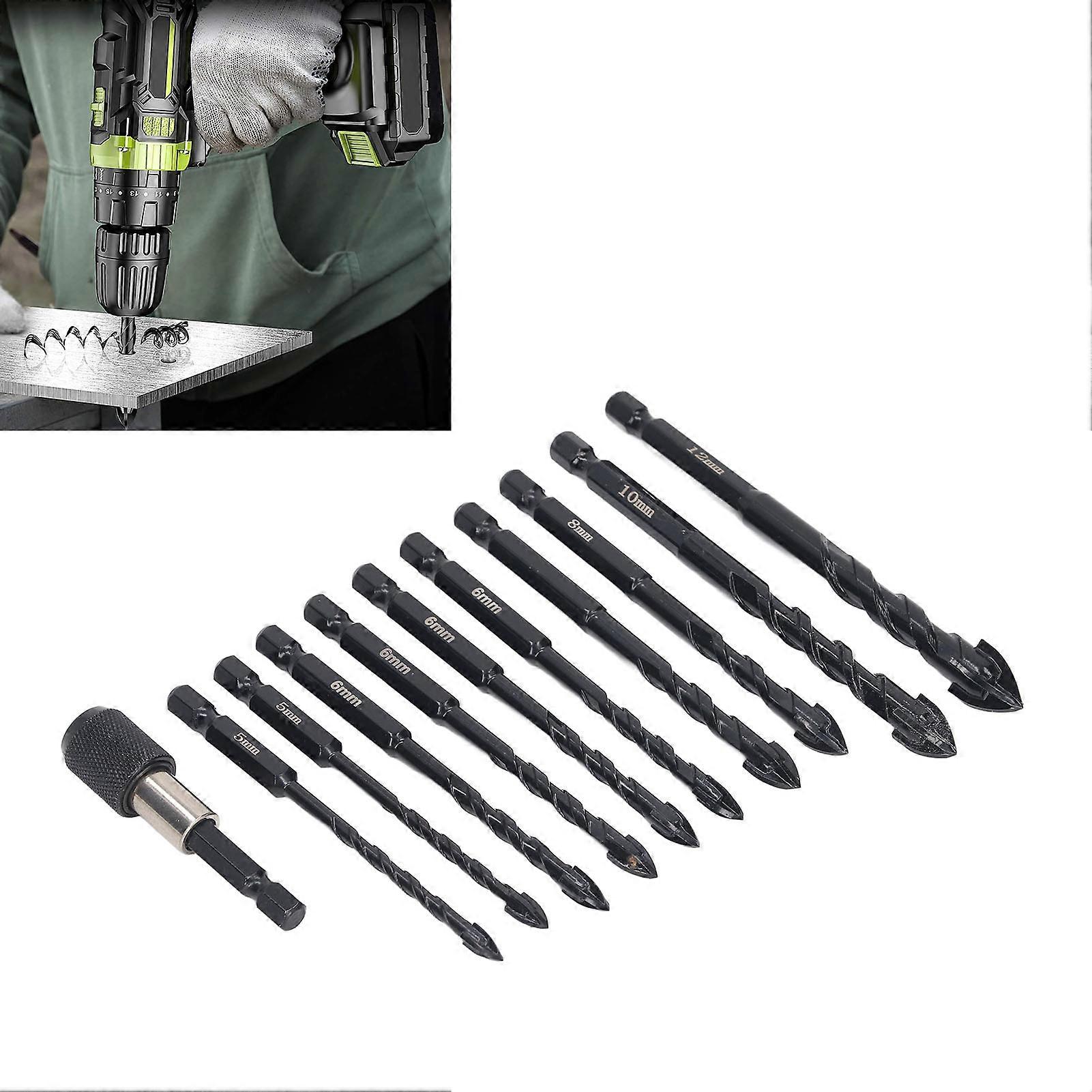 11 Pcs Masonry Drill Bit Set 5-12mm Hex Shank Carbide Bits
