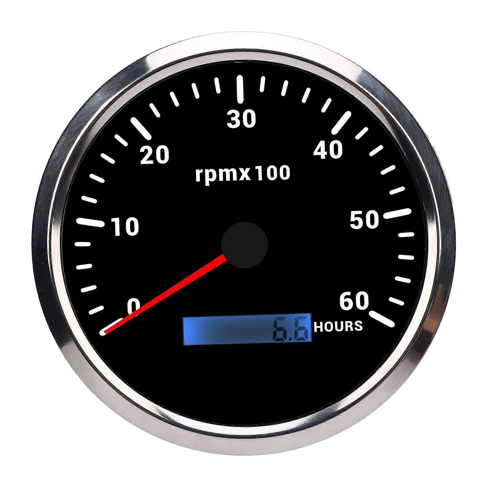 110mm 4 3/8in Tachometer 7 Color Backlight 6000RPM Gauge with Hour Meter for Truck Tractor Trailer Car RV Boat DC 9 to 32V Black Dial Silver Bezel CXA