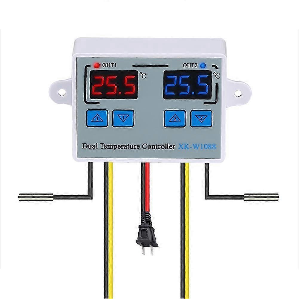 110-220V Digital Dual Temperature Controller LED Celsius Thermostat Regulator Heating Cooling Temperature Control with Waterproof Probes for Cooler He