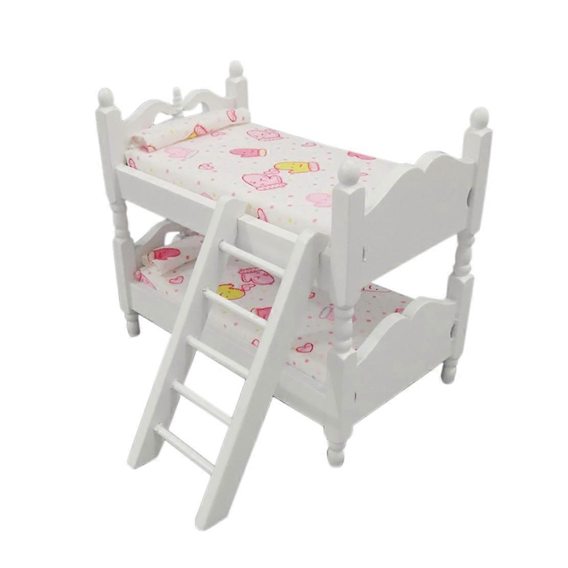 1:12 Miniature Kids Bedroom Furniture Bunk Bed 1:12 Doll House Decor Pretend Play Furniture Toy(Pink Gloves)
