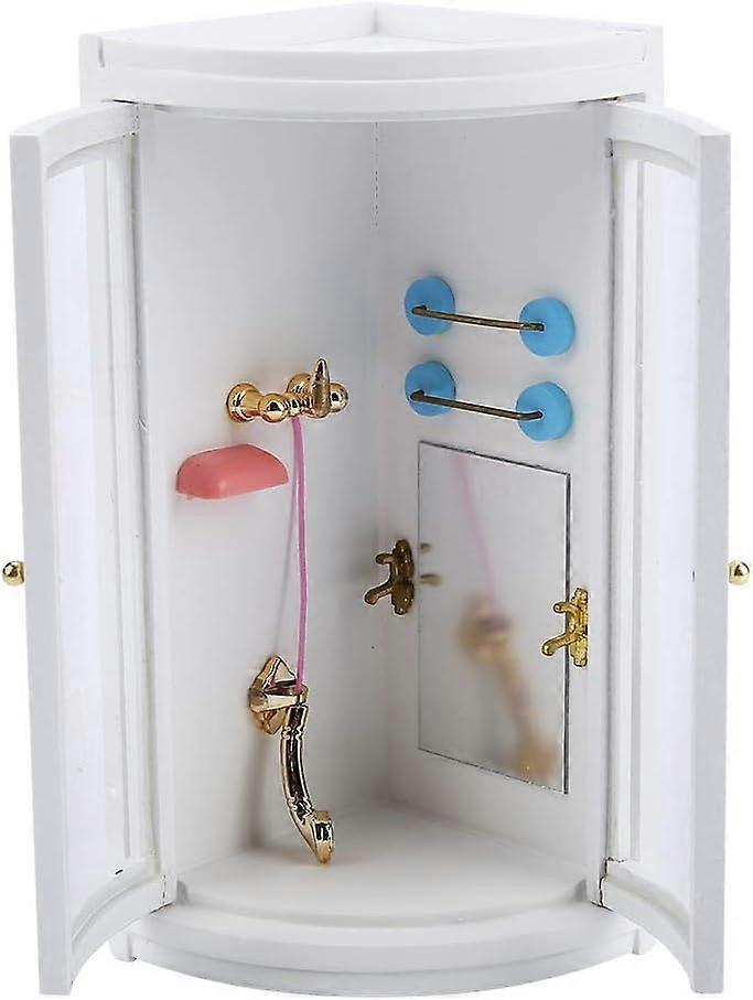 1:12 Mini Dollhouse Shower Bathroom Wooden Miniature Shower Room Simulation Bathrooms Dollhouses Furniture Landscape for Kids Educational Pretend Play
