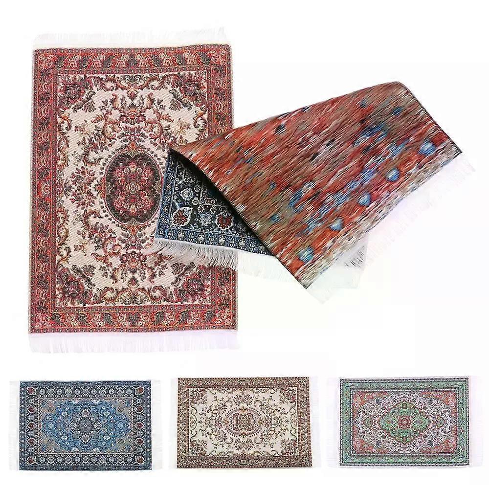 1:12 Scale Dollhouse Carpet Playing House Decor Floor Coverings Floral Pattern Mat Doll Accessories Miniature Weaving Rug