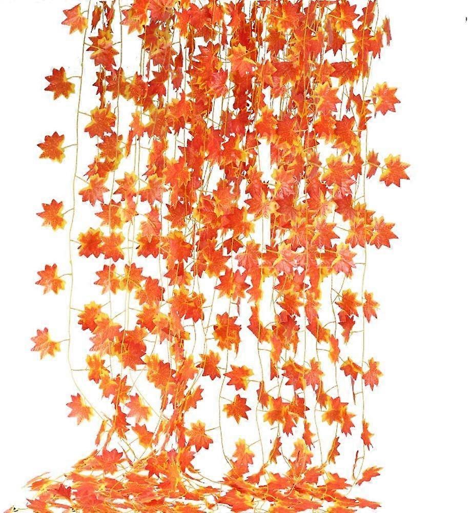12 Pcs Autumn Garland Maple Leaves Artificial Decoration Maple Garlands Red Maple Leaves Ivy Hanging Plant