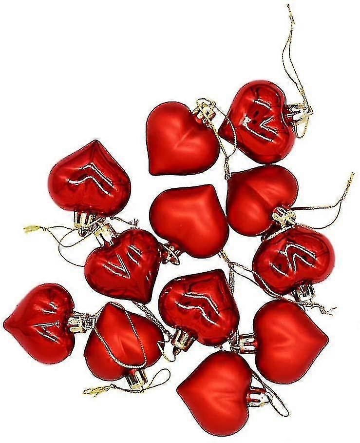 12 Pcs Christmas Ball Ornaments Heart Shape Christmas Decorations Tree Balls For Holiday Wedding Party Decoration (red)