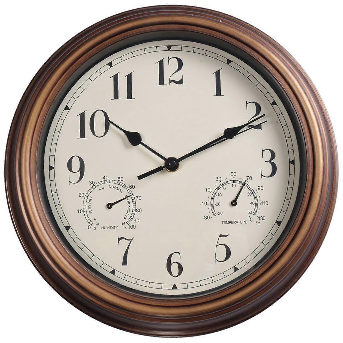 12inch Wall Clock,Retro Waterproof Clock with Displays Thermometer&Hygrometer,Noise-Free Clock for Indoor/Outdoor