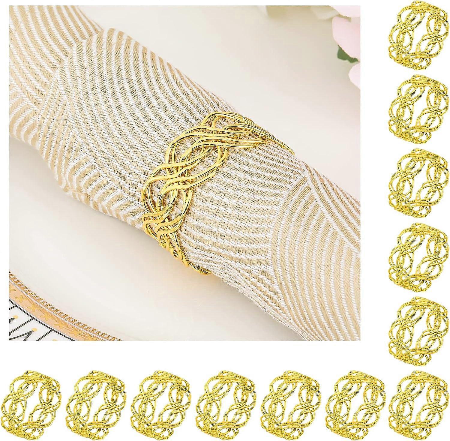 12-Pack Napkin Rings, Metallic Twined Napkin Rings Serviette Ring Holder for Wedding Party, G DBM