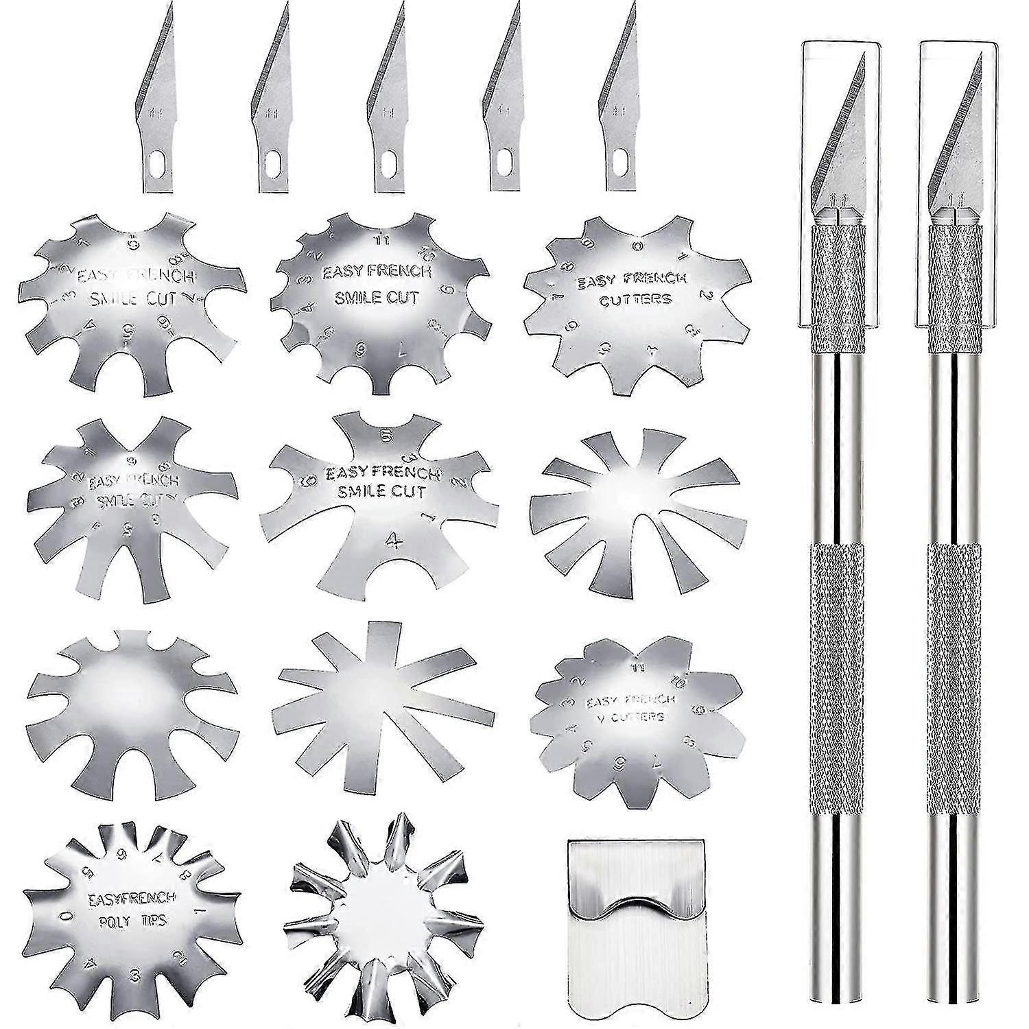 12 Pieces French Nail Trimmer Stainless Steel French Tip Cutters Smile Line Cutter Edge Manicure Diy Plate Module With 2 Handles French Tip Cutting Kn