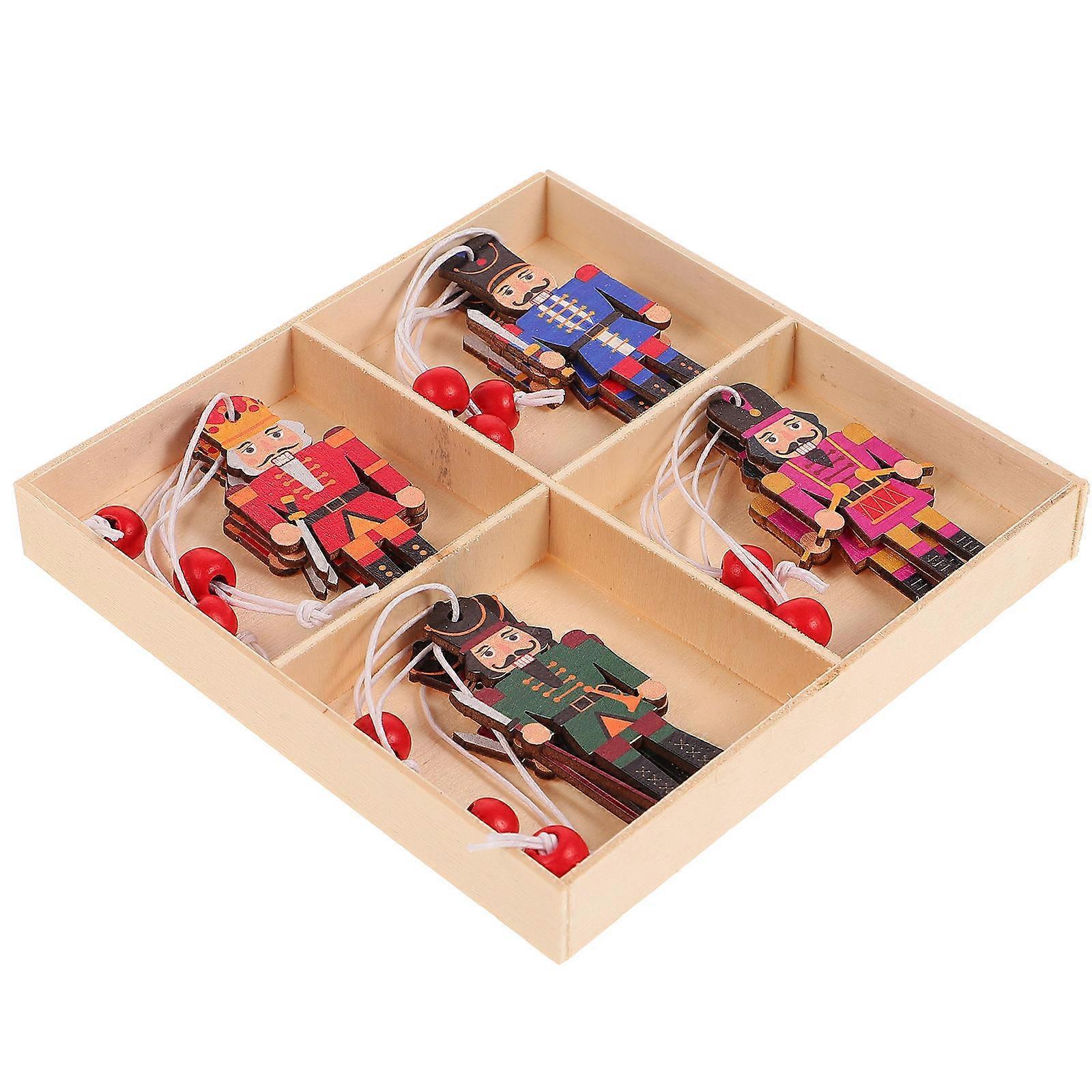 12pcs Colorful Wooden Walnut Soldier Pendants Festive Nutcracker Cutouts for Christmas Tree Wall Party Decorations