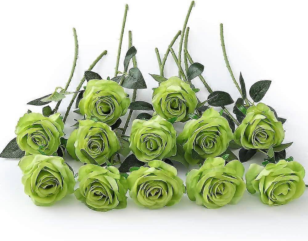12 Pcs Artificial Gold Roses Flowers Long Stem Silk Fake Gold Flower For Home Wedding Decoration (gold)