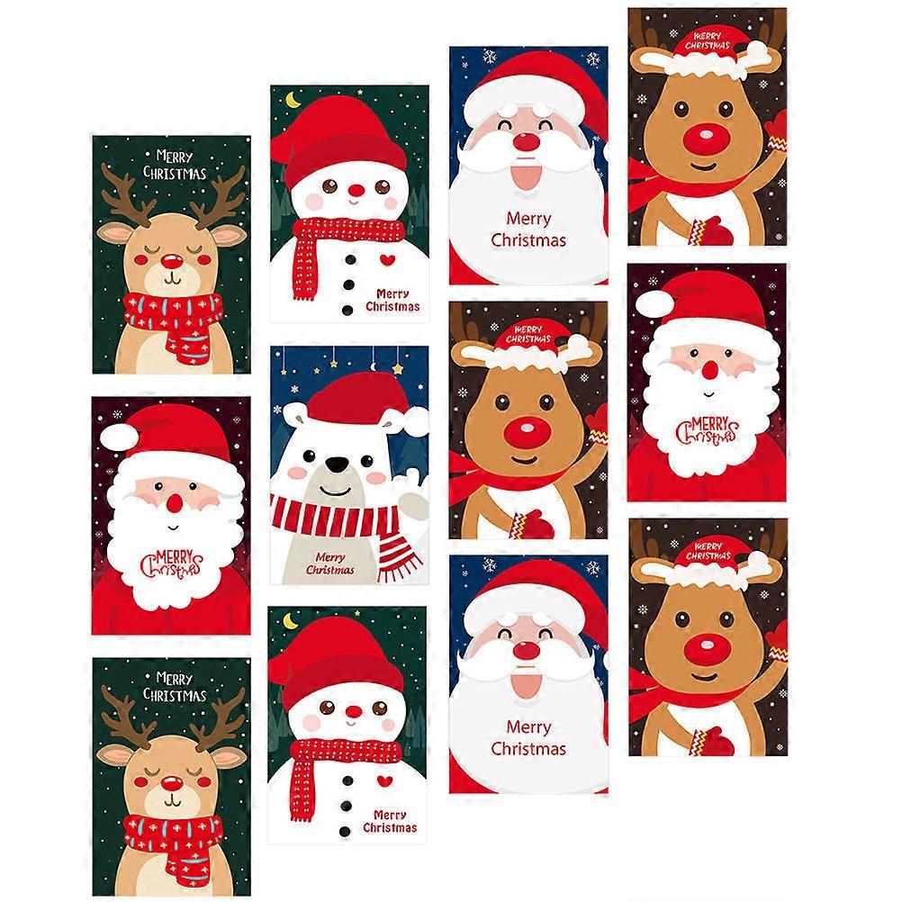 12pcs Cartoon Merry Christmas Greeting Cards with Vibrant Designs for Holiday Cheer