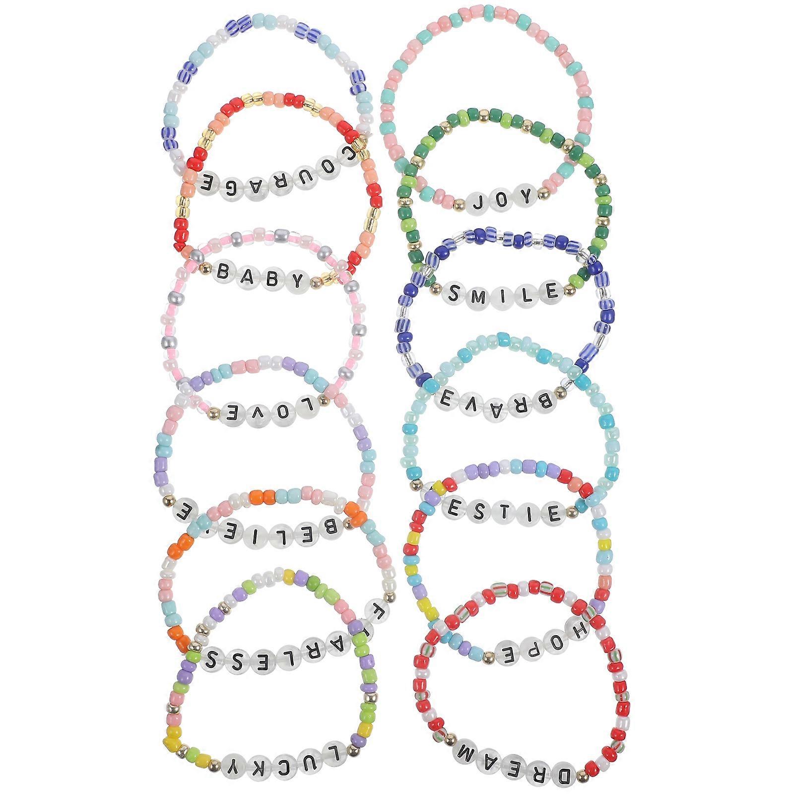 12pcs Glow in the Dark Letter Beaded Bracelets for Colorful Handmade Jewelry, Lightweight Comfortable