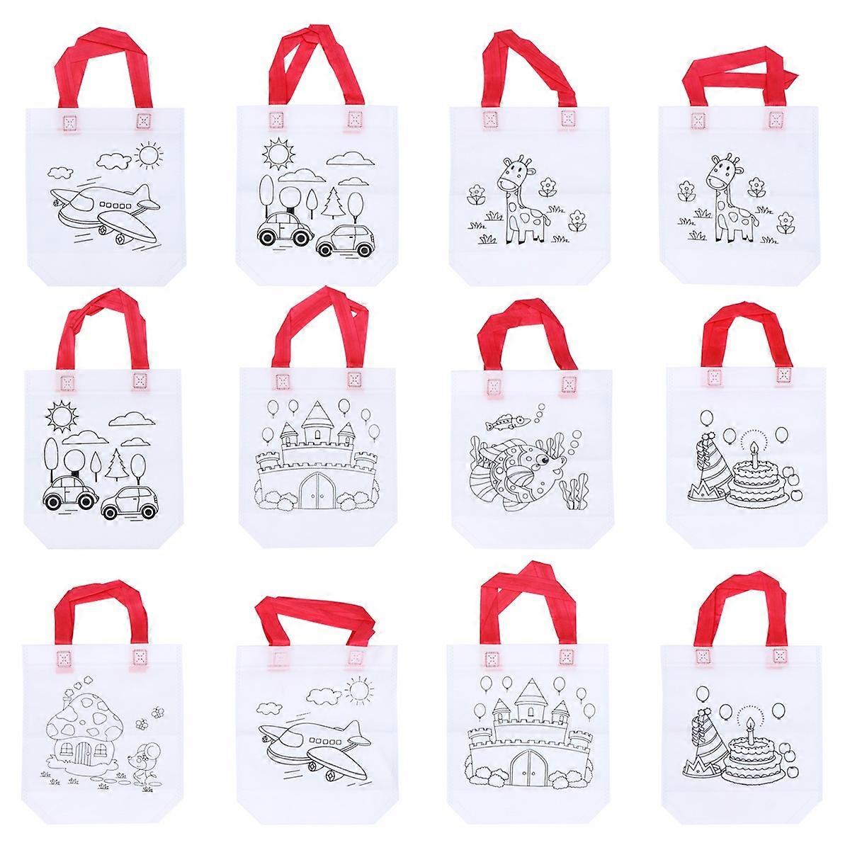 12pcs DIY Graffiti Tote Bags – Reusable Non Woven Coloring & Storage Bags with Assorted Creative Designs (No Pens Included)