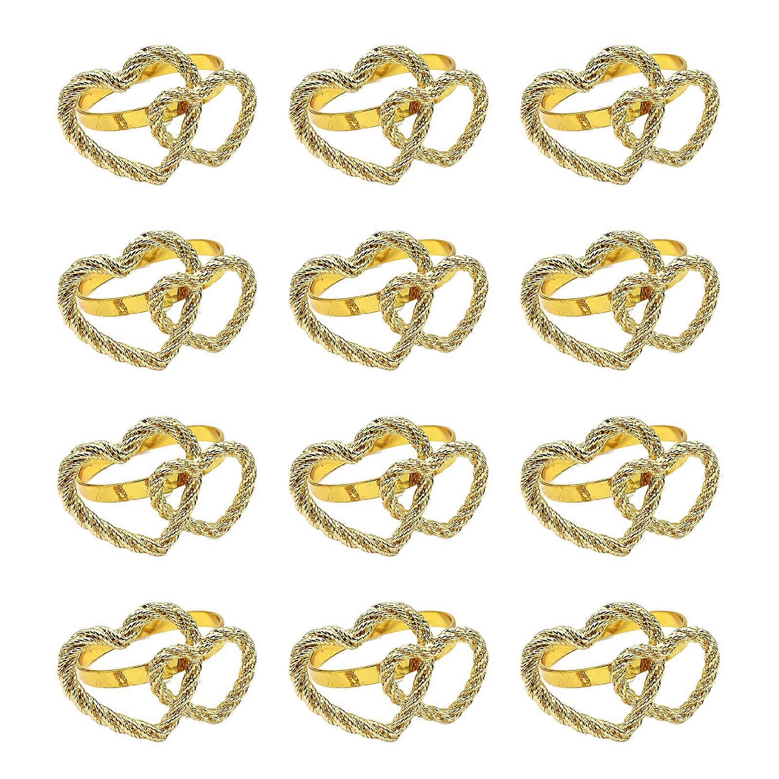 12pcs Valentine's Day Napkin Rings Double Heart Shaped Napkin Ring Holder for Valentine Wedding Banquet Birthday Party Thanksgiving Table Decor Gold