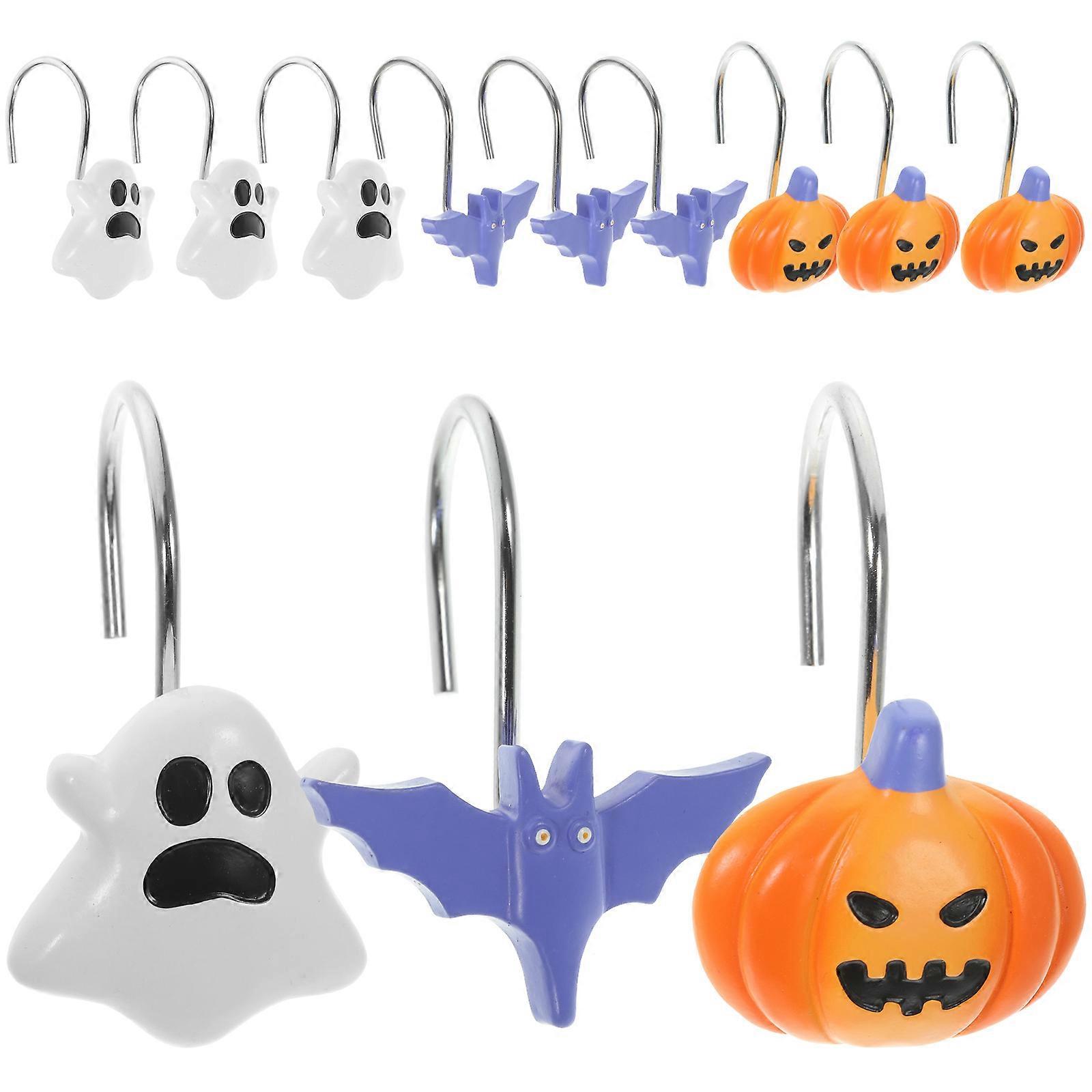 12Pcs Decorative Shower Curtain Hooks Halloween Style Bat Pumpkin Ghost Shapes Perfect For Halloween Celebration And Family Use
