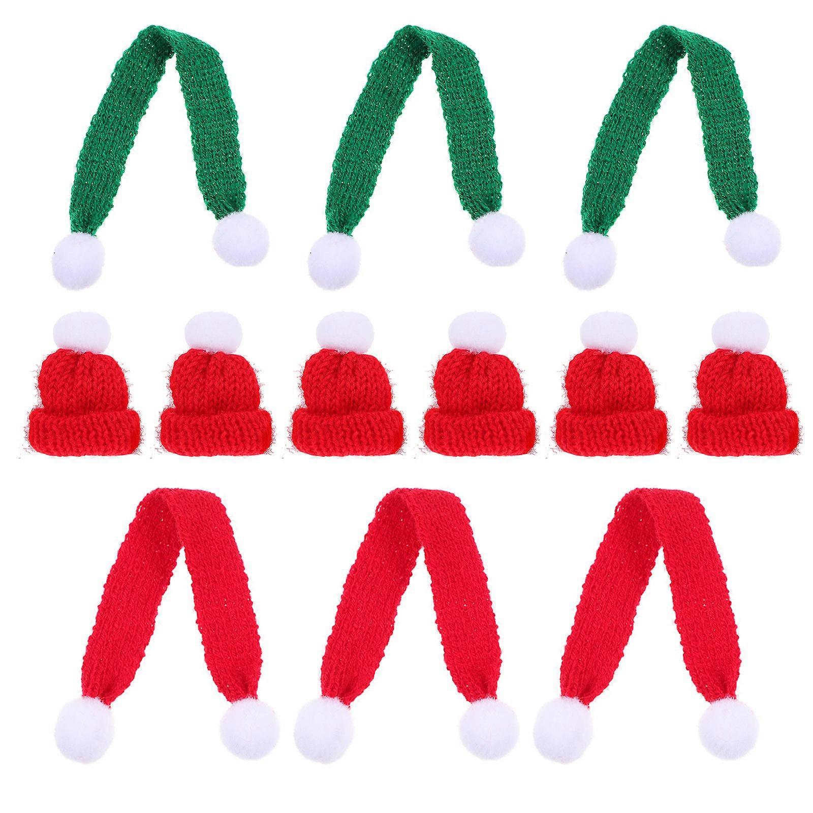 12Pcs Christmas Ornaments Knitted Decor For Bottle Cover Miniatures For Crafts 4x4cm Decorative Use