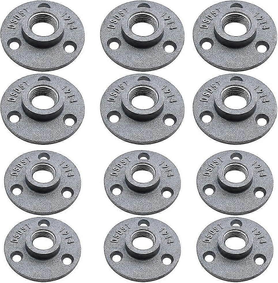 12pcs Threaded Floor Flange 1/2 inch and 3/4 inch Pipe Flange Cast Aluminum Pipe Fittings Industrial Style Pipe Decor for Bar Restaurant Hotel